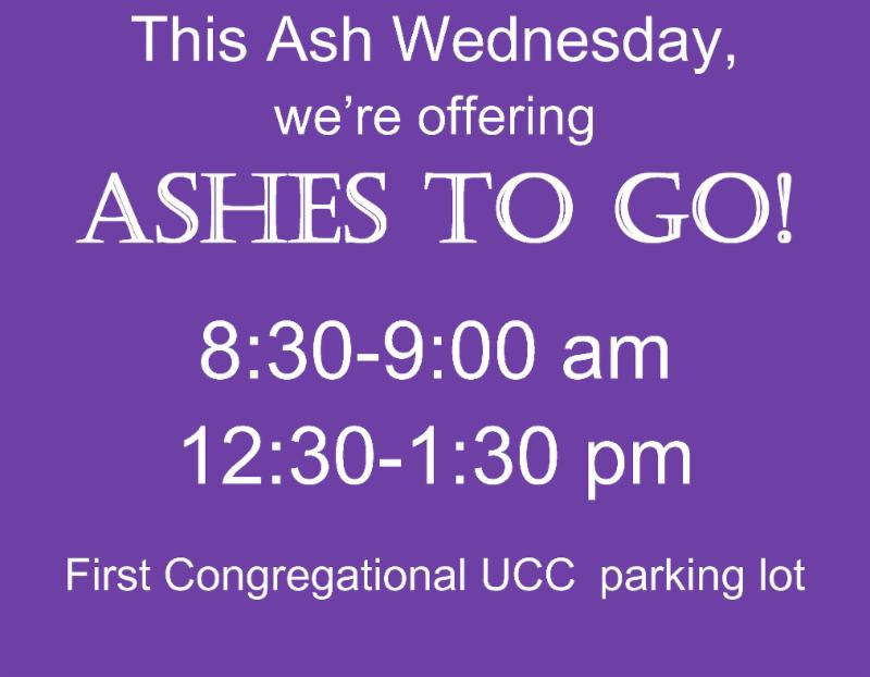 Our Pastor, Rev. Heather meets you in our parking lot and provides you with ashes on your forehead and a blessing for your soul. Ashes-To-Go takes place every Ash Wednesday in our parking lot from 8:30 to 9:30 am (even though our sign says 9:00 it’s really 9:30) and again from 12:30-1:30 pm. All are welcome!