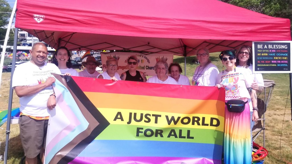As an Open and Affirming congregation, our church celebrates, supports, and warmly welcomes our LGBYQIA+ neighbors into the full life and leadership of our congregation. Our Pastor of over 13 years is an out lesbian. We cherish and appreciate the brave authenticity of our trans and gender non-binary community and offer them a safe space to be their real selves. We have participated in Pride Parades in New Paltz from 2010 until 2019. Then in 2020 we began to participate in Poughkeepsie’s own Pride Parade. We both march in the parade and we staff a booth at the after-parade festival in Waryus Park, making sure everyone at the festival knows that we are truly a warm and welcoming place for EVERYONE no matter who you are and where you happen to be on life’s journey.